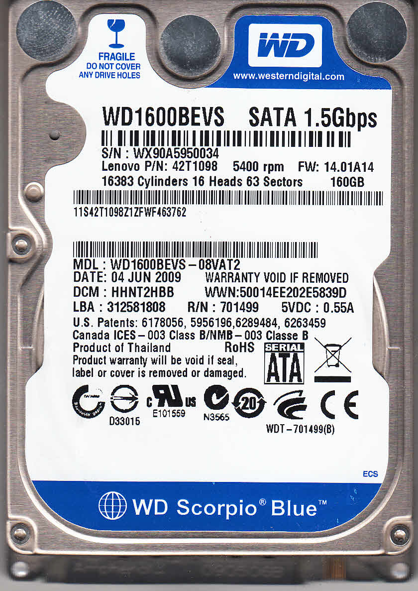 هارد 160 گیگ اینترنال WD استوک لپ تاپی